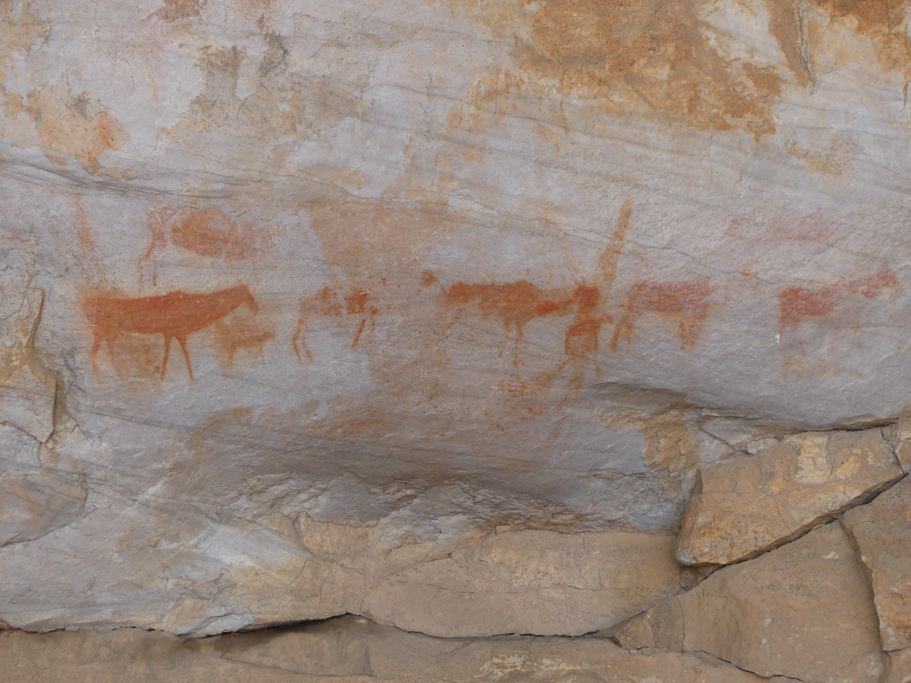 Témoignage d'une époque où le climat était moins sec et la faune plus abondante, comme le montrent ces éléphants qui ont depuis longtemps,disparu de cette région.