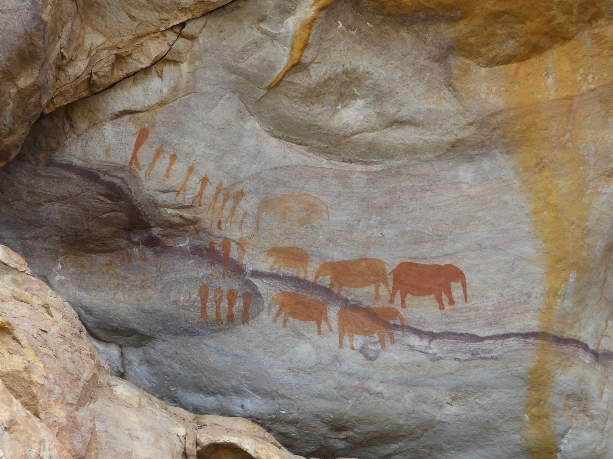 Témoignage d'une époque où le climat était moins sec et la faune plus abondante, comme le montrent ces éléphants qui ont depuis longtemps,disparu de cette région.